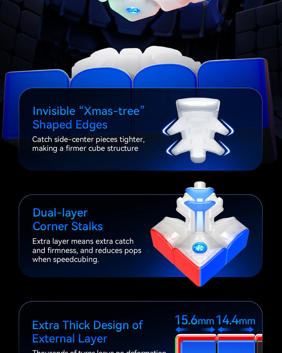 A redesigned dual track system significantly boosts stability, reduces pops, and enhances reliability — ideal for fast, pressure-tested solves.